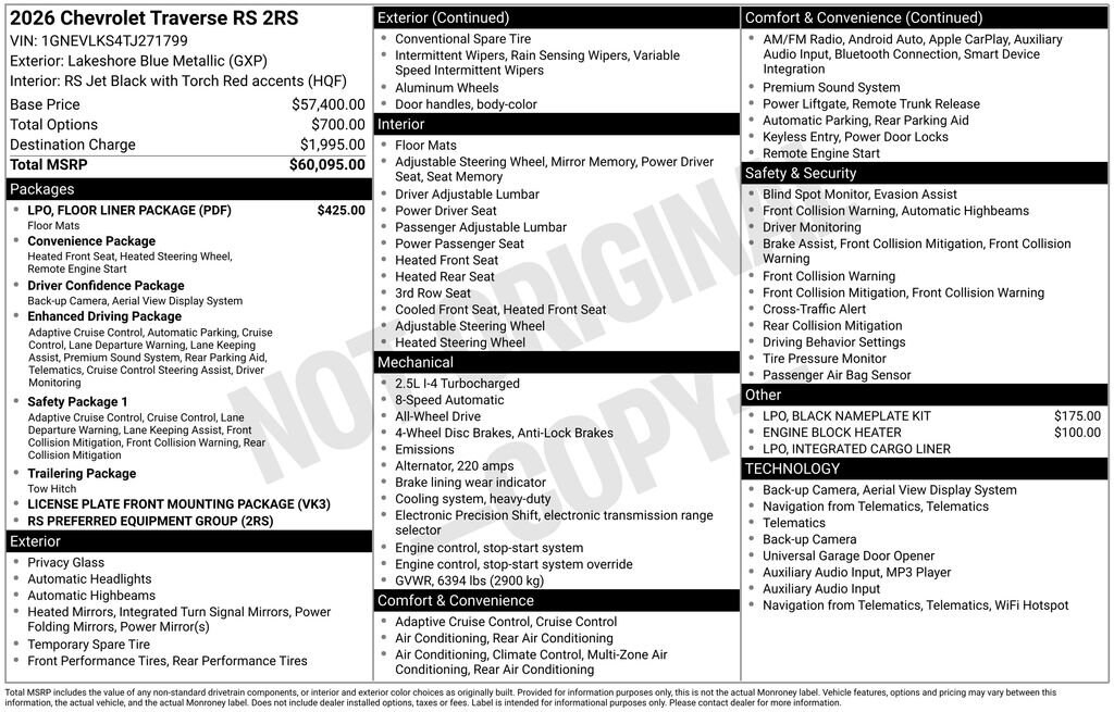 This 2026 Chevrolet Traverse RS is a true masterpiece of engineering and design. With its exceptional performance, advanced technology, and uncompromising comfort, it's the ideal choice for those seeking a versatile and capable SUV. We invite you to experience the Traverse RS for yourself and discover the difference it can make in your driving experience.