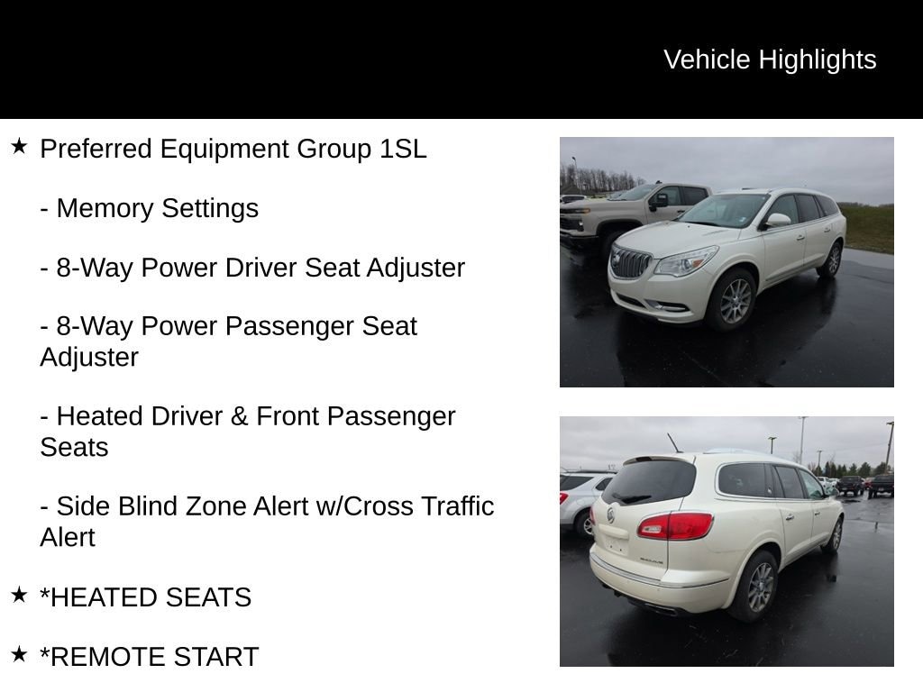 Under the hood, the powerful 3.6L V6 engine delivers an exceptional balance of performance and efficiency, with an EPA-estimated 24 MPG on the highway. Paired with a smooth-shifting 6-speed automatic transmission, this Enclave provides the responsive power you need for confident acceleration and effortless highway cruising.