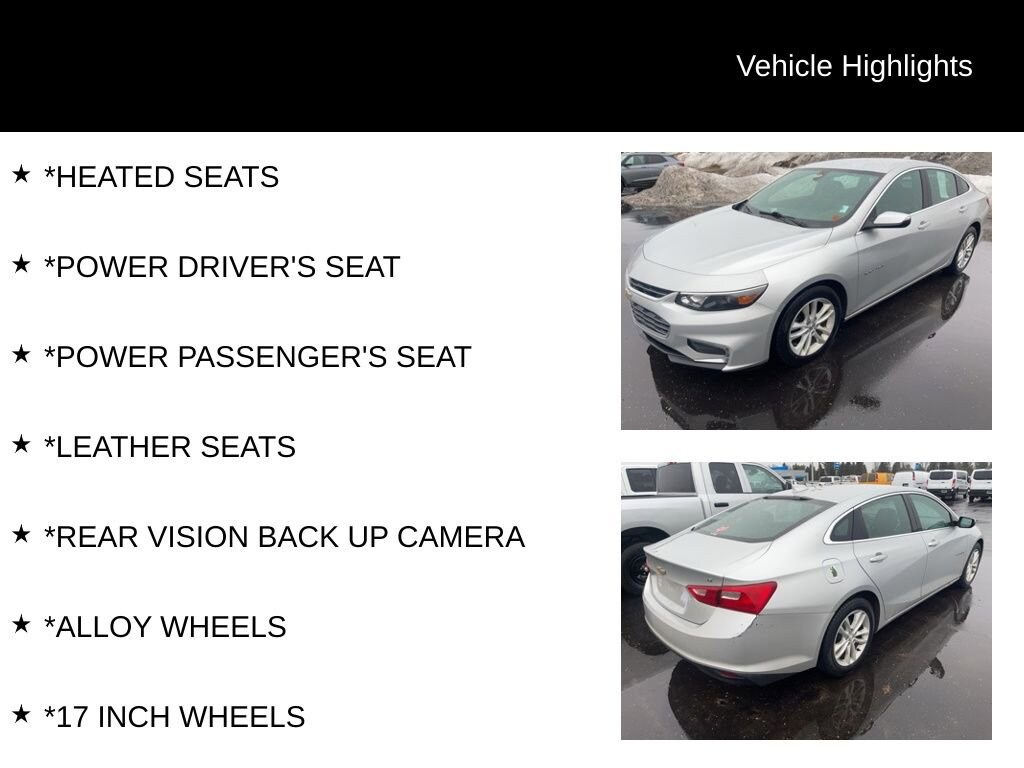 This 2017 Chevrolet Malibu LT 1LT is a fantastic value at just $8,788. With its impressive efficiency, premium features, and proven reliability, it's an exceptional choice for the discerning buyer. I encourage you to come in and take this Malibu for a test drive I'm confident you'll be impressed by its quality and capability.