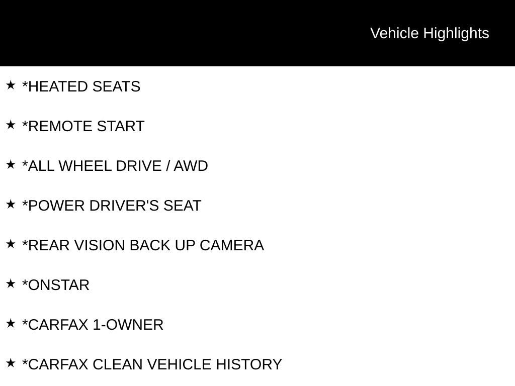 - Turn-by-turn nav : OnStar Turn-by-Turn Navigation