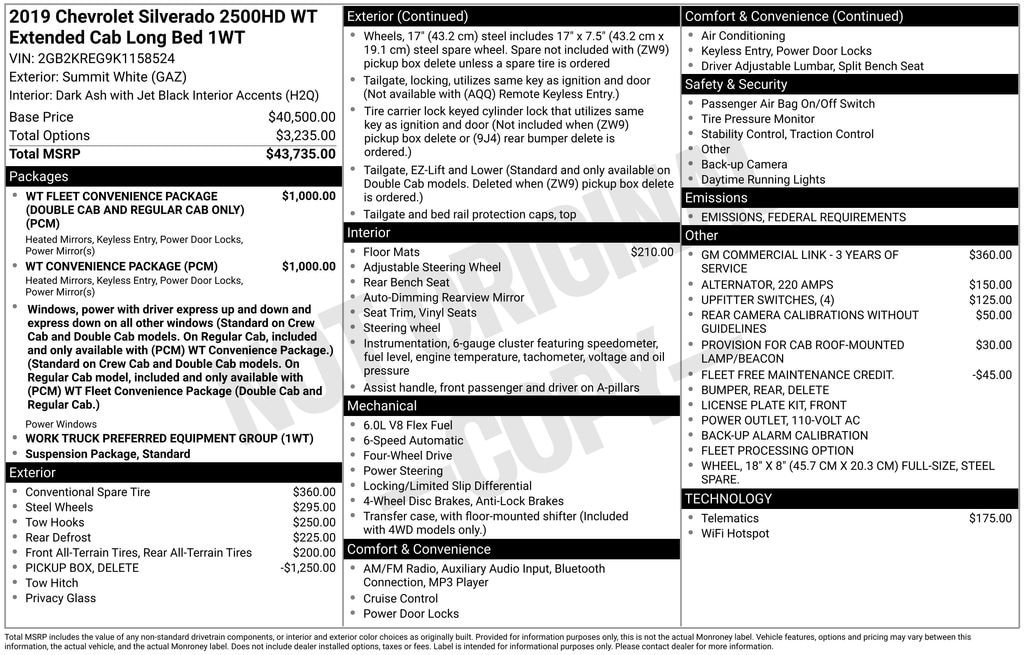 Used 2019 ChevroletSilverado 2500 HD Work Truck