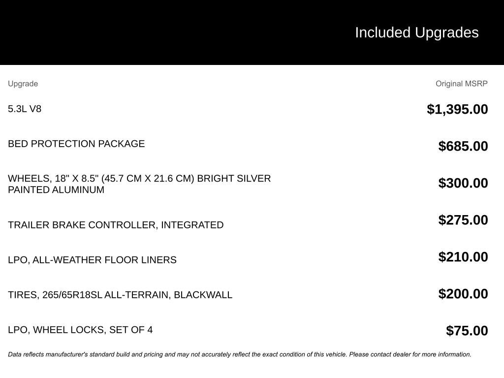 Under the hood, you'll find the powerful EcoTec3 5.3L V8 engine, delivering 355 horsepower and 383 lb-ft of torque. Paired with an 8-speed automatic transmission and 4-wheel drive, this Silverado is ready to tackle any terrain with confidence. The Bed Protection Package adds durable wheel house liners and a Chevytec spray-on bedliner, ensuring your truck can handle even the toughest jobs.