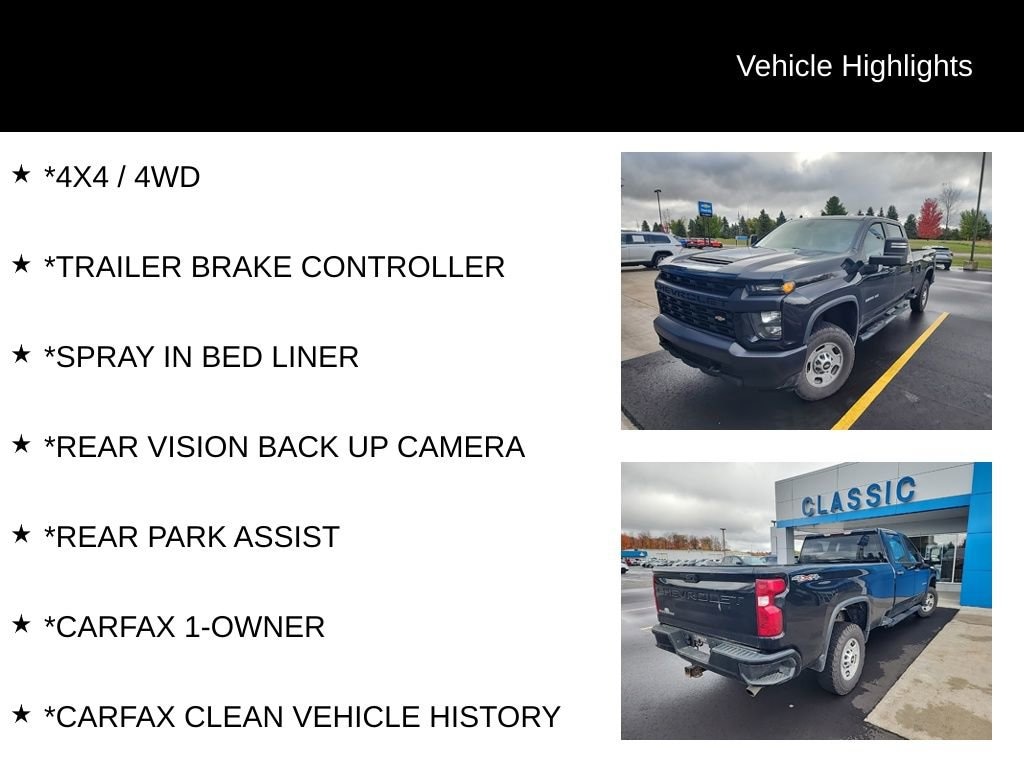 *4X4 / 4WD, *TRAILER BRAKE CONTROLLER, *SPRAY IN BED LINER, *REAR VISION BACK UP CAMERA, *REAR PARK ASSIST, *CARFAX 1-OWNER, *CARFAX CLEAN VEHICLE HISTORY, 6-Speed Automatic, 4WD, Black Cloth, 170 Amp Alternator, 2-Speed Electronic Shift Transfer Case, 3.5 Diagonal Monochromatic Display DIC, 3.73 Rear Axle Ratio, 4-Wheel Disc Brakes, 6 Speakers, 6-Speaker Audio System, 720 Cold-Cranking Amps Heavy-Duty Battery, ABS brakes, Air Conditioning, AM/FM radio, Apple CarPlay/Android Auto, Black Chevytec Spray-On Bedliner w/Chevrolet Logo, Black Front Bumper, Black Front Grille, Black Mirror Caps, Black Rear Bumper, Bluetooth® For Phone, Brake assist, Delay-off headlights, Driver door bin, Dual front impact airbags, Dual front side impact airbags, Electronic Cruise Control w/Set & Resume Speed, Electronic Stability Control, Front 40/20/40 Split-Bench Seat w/Storage, Front anti-roll bar, Front Center Armrest w/Storage, Front reading lights, Front wheel independent suspension, Fully automatic headlights, Heated Vertical Trailering Mirrors, High-Visibility Vertical Trailering Mirrors, Integrated Trailer Brake Controller, Locking Tailgate, Low tire pressure warning, Manual Tailgate Function w/EZ Lift, Manual Tailgate Function w/No EZ Lift, Manual Tilt-Wheel Steering Column, Occupant sensing airbag, Outside temperature display, Overhead airbag, Overhead console, Passenger door bin, Passenger vanity mirror, Power Rear Windows w/Express Down, Power steering, Power windows, Preferred Equipment Group 1WT, Premium audio system: Chevrolet Infotainment 3, Radio: Chevrolet Infotainment 3 System, Rear 60/40 Folding Bench Seat (Folds Up), Rear reading lights, Rear step bumper, Remote Keyless Entry, Rubberized-Vinyl Floor Covering, Solar Absorbing Tinted Glass, Split folding rear seat, Suspension Package, Tachometer, Tilt steering wheel, Traction control, Trip computer, Variably intermittent wipers, Vinyl Seat Trim, Voltmeter, Wheels: 17 Silver Painted Steel, 6-Speed Automatic, 4WD, Black Cloth.