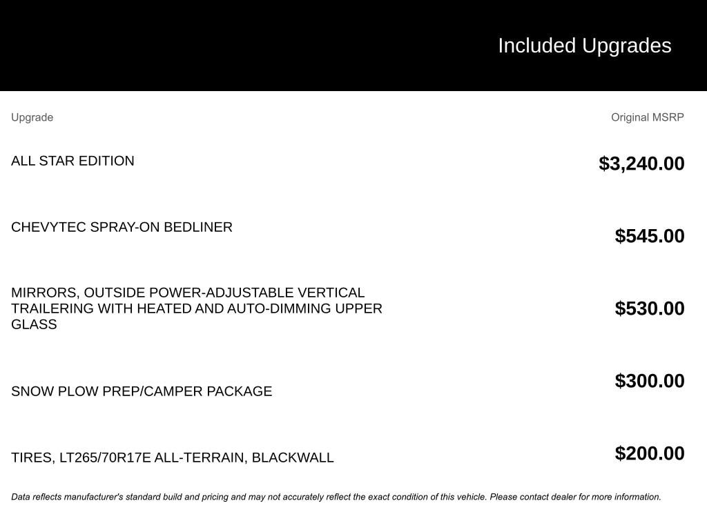 - Spray-in bedliner and all-terrain tires for enhanced durability and versatility