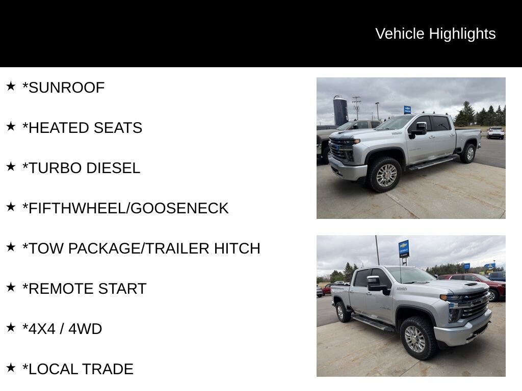 Equipped with a powerful Duramax 6.6L V8 Turbodiesel engine and a robust 10-speed automatic transmission, this Silverado 2500HD High Country delivers unparalleled performance and towing capacity. Its 4WD system ensures confident handling in any terrain, while features like: