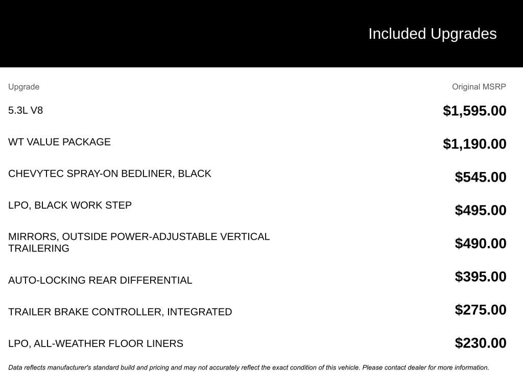 - Engine : EcoTec3 5.3L V-8 gasoline direct injection, variable valve control, regular unleaded, engine with cylinder deactivation and 355HP