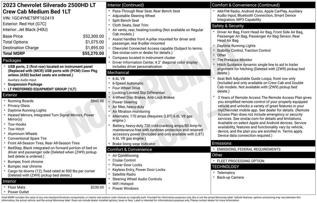*TOW PACKAGE/TRAILER HITCH, *4X4 / 4WD, *TRAILERING MIRRORS, *TRAILER BRAKE CONTROLLER, *ASSIST STEPS / RUNNING BOARDS, *REAR VISION BACK UP CAMERA, *REAR PARK ASSIST, *NAVIGATION, *CARFAX CLEAN VEHICLE HISTORY, 6-Speed Automatic, 4WD, Black Cloth, 170 Amp Alternator, 2 USB Ports (1st Row), 2-Speed Electronic Shift Transfer Case, 4-Way Manual Driver Seat Adjuster, 4.2 Diagonal Color Display Driver Info Center, Black Mirror Caps, Bluetooth® For Phone, Chevrolet Connected Access Capable, Chrome Front Grille, Color-Keyed Carpeting Floor Covering, Compass, Deep-Tinted Glass, Electronic Cruise Control w/Set & Resume Speed, EZ Lift Power Lock & Release Tailgate, Front Rubberized Vinyl Floor Mats, Halogen Reflector Headlamps, Heated Vertical Trailering Mirrors, Integrated Trailer Brake Controller, Manual Tilt-Wheel Steering Column, OnStar & Chevrolet Connected Services Capable, Power Door Locks, Power Front Windows w/Driver Express Up/Down, Power Front Windows w/Passenger Express Down, Power Rear Windows w/Express Down, Preferred Equipment Group 1LT, Rear 60/40 Folding Bench Seat (Folds Up), Rear Rubberized Vinyl Floor Mats, Rear Vision Camera, Remote Keyless Entry, SiriusXM Radio, Standard Tailgate, Steering Wheel Audio Controls, Wi-Fi Hotspot Capable, Wrapped Steering Wheel, 17 Machined Aluminum Wheels, 3.73 Rear Axle Ratio, 4-Wheel Disc Brakes, 4 Round Chromed Assist Steps (LPO), 6 Speakers, 6-Speaker Audio System, 720 Cold-Cranking Amps Heavy-Duty Battery, ABS brakes, Air Conditioning, All-Weather Floor Liners (LPO), Alloy wheels, AM/FM radio: SiriusXM, Apple CarPlay/Android Auto, Brake assist, Bumpers: chrome, Cloth Seat Trim, Delay-off headlights, Driver door bin, Driver vanity mirror, Dual front impact airbags, Dual front side impact airbags, Electronic Stability Control, Front 40/20/40 Split-Bench Seats, Front anti-roll bar, Front Center Armrest w/Storage, Front reading lights, Front wheel independent suspension, Fully automatic headlights, Heated door mirrors, Illuminated entry, Low tire pressure warning, Occupant sensing airbag, Outside temperature display, Overhead airbag, Overhead console, Panic alarm, Passenger door bin, Passenger vanity mirror, Power door mirrors, Power steering, Power windows, Premium audio system: Chevrolet Infotainment 3, Radio: Chevrolet Infotainment 3 System, Rear reading lights, Rear step bumper, Remote keyless entry, Speed control, Split folding rear seat, Steering wheel mounted audio controls, Suspension Package, Tachometer, Tilt steering wheel, Traction control, Trip computer, Turn signal indicator mirrors, Variably intermittent wipers, Voltmeter, 6-Speed Automatic, 4WD, Black Cloth, 170 Amp Alternator, 2 USB Ports (1st Row), 2-Speed Electronic Shift Transfer Case, 4-Way Manual Driver Seat Adjuster, 4.2 Diagonal Color Display Driver Info Center, Black Mirror Caps, Bluetooth® For Phone, Chevrolet Connected Access Capable, Chrome Front Grille, Color-Keyed Carpeting Floor Covering, Compass, Deep-Tinted Glass, Electronic Cruise Control w/Set & Resume Speed, EZ Lift Power Lock & Release Tailgate, Front Rubberized Vinyl Floor Mats, Halogen Reflector Headlamps, Heated Vertical Trailering Mirrors, Integrated Trailer Brake Controller, Manual Tilt-Wheel Steering Column, OnStar & Chevrolet Connected Services Capable, Power Door Locks, Power Front Windows w/Driver Express Up/Down, Power Front Windows w/Passenger Express Down, Power Rear Windows w/Express Down, Preferred Equipment Group 1LT, Rear 60/40 Folding Bench Seat (Folds Up), Rear Rubberized Vinyl Floor Mats, Rear Vision Camera, Remote Keyless Entry, SiriusXM Radio, Standard Tailgate, Steering Wheel Audio Controls, Wi-Fi Hotspot Capable, Wrapped Steering Wheel.