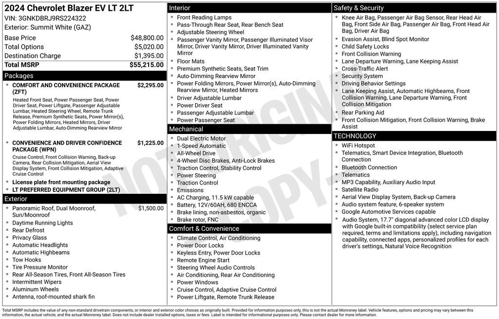 BEST EV SUV in its price range. Impressive blend of style, performance, and technology. Its sleek, modern design stands out, while the spacious interior offers comfort and convenience. The advanced electric drivetrain delivers smooth, responsive acceleration and an impressive range, making it ideal for both city driving and longer trips. The intuitive infotainment system, complete with a large touchscreen and seamless smartphone integration, enhances the driving experience. Safety features, including advanced driver-assist technologies, provide peace of mind. Overall, the Blazer EV combines eco-friendly innovation with the practicality and reliability expected from Chevrolet, making it a top choice in the EV market.