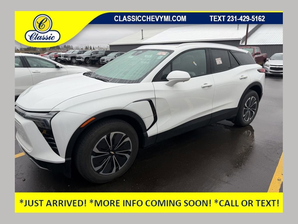 CARFAX One-Owner.*PANORAMIC SUNROOF, *REMOTE START, *ALL WHEEL DRIVE / AWD, *HEATED STEERING WHEEL, *POWER DRIVER'S SEAT, *MEMORY DRIVER'S SEAT, *LEATHER SEATS, *POWER LIFTGATE, *REAR VISION BACK UP CAMERA, *REAR PARK ASSIST, *FRONT & REAR PARK ASSIST, *BLIND SPOT MONITOR, *SIDE BLIND ZONE ALERT, *REAR CROSS TRAFFIC ALERT, *LANE KEEP ASSIST, *NAVIGATION, *ONSTAR, 11.1 Axle Ratio, 2-Way Power Driver Lumbar Seat Adjuster, 2-Way Power Passenger Lumbar Seat Adjuster, 4-Wheel Disc Brakes, 6 Speakers, 6-Speaker Audio System Feature, 6-Way Power Passenger Seat Adjuster, 8-Way Power Driver Seat Adjuster, ABS brakes, Adaptive Cruise Control, Air Conditioning, Alloy wheels, AM/FM radio: SiriusXM with 360L, Auto High-beam Headlights, Automatic temperature control, Brake assist, Bumpers: body-color, Comfort & Convenience Package, Compass, Convenience & Driver Confidence Package, Delay-off headlights, Driver door bin, Driver vanity mirror, Dual front impact airbags, Dual front side impact airbags, Electronic Stability Control, Emergency communication system: OnStar and Chevrolet connected services capable, Enhanced Automatic Emergency Braking, Evotex Seat Trim, Four wheel independent suspension, Front anti-roll bar, Front Bucket Seats, Front Center Armrest, Front reading lights, Fully automatic headlights, HD Surround Vision, Heated Driver & Fr Passenger Seats Cushion & Seatback, Heated Steering Wheel, Hitch Guidance, Hitch View, Illuminated entry, Inside Rear-View Auto-Dimming Mirror, Intersection Automatic Emergency Braking, Knee airbag, Low tire pressure warning, Navigation System, Occupant sensing airbag, Outside temperature display, Overhead airbag, Overhead console, Panic alarm, Passenger door bin, Passenger vanity mirror, Power door mirrors, Power Dual Panel Panoramic Sliding Sunroof, Power steering, Power windows, Power-Adjustable Power-Folding Heated Mirrors, Preferred Equipment Group 2LT, Programmable Hands Free AutoSense Power Liftgate, Radio: 17.7 Diagonal Advanced Color LCD Display, Rear anti-roll bar, Rear Pedestrian Alert, Rear reading lights, Rear seat center armrest, Rear window defroster, Rear window wiper, Remote keyless entry, Reverse Automatic Braking, Ride & Handling Suspension, Satin Aluminum Finish Roof Rails, Security system, Side Bicyclist Alert, SiriusXM w/360L, Speed control, Split folding rear seat, Spoiler, Steering wheel mounted audio controls, Telescoping steering wheel, Tilt steering wheel, Traction control, Trip computer, Variably intermittent wipers, Wheels: 19 Machined-Face Aluminum w/Painted Pockets, Wireless Phone Charging, Wrapped Steering Wheel.Recent Arrival!When you visit Classic Chevrolet in Lake City, MI, you'll enjoy a large inventory of new and pre-owned vehicles in a no-pressure, tranquil Northern Michigan setting. Our well-trained staff prioritizes customer service, ensuring a pleasant experience. Whether you're from Lake City or nearby areas like Cadillac, Traverse City, Kingsley, Kalkaska, Suttons Bay, Gaylord, Grayling, Alpena, Sault Ste. Marie, Roscommon, West Branch, Houghton Lake, Manistee, Ludington, Reed City, Evart, Big Rapids, Mt. Pleasant, Clare, Grand Rapids, Bay City, or Saginaw, remember, all roads lead to Classic! Please note that vehicle options and content may vary from computer-generated descriptions. For accurate details, call us directly. Classic is responsible for correcting errors promptly and will not honor incorrect prices or descriptions. Thank you for your understanding. Tax, title, and license fees are extra.*CALL THE CLASSIC CHEVY SALES TEAM TODAY TO SCHEDULE A TEST DRIVE!2024 Chevrolet Blazer EV LT103/88 City/Highway MPG103/88 City/Highway MPG