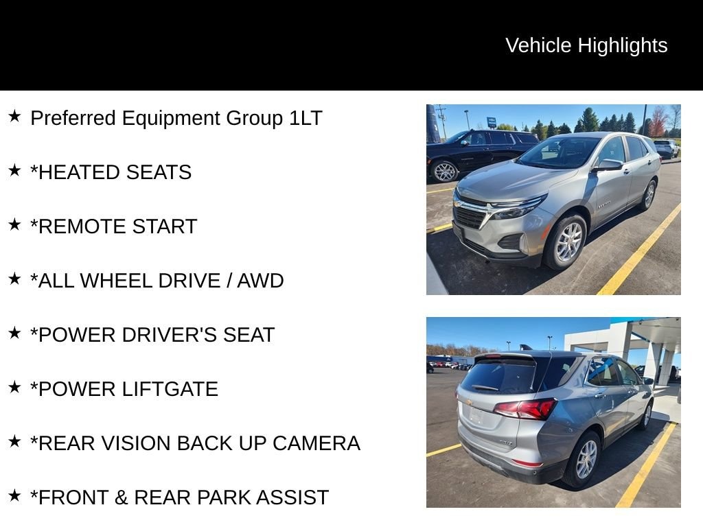 *HEATED SEATS, *REMOTE START, *ALL WHEEL DRIVE / AWD, *POWER DRIVER'S SEAT, *POWER LIFTGATE, *REAR VISION BACK UP CAMERA, *FRONT & REAR PARK ASSIST, *BLIND SPOT MONITOR, *SIDE BLIND ZONE ALERT, *REAR CROSS TRAFFIC ALERT, *LANE DEPARTURE WARNING, *LANE KEEP ASSIST, *FORWARD COLLISION ALERT, *AUTOMATIC BRAKING, *INTELLIBEAM HEADLIGHTS, *ONSTAR, *ALLOY WHEELS, *CARFAX 1-OWNER, *CARFAX CLEAN VEHICLE HISTORY, *REMAINDER OF FACTORY WARRANTY, AWD, Preferred Equipment Group 1LT, 17 Aluminum Wheels, 2 Rear USB Charging-Only Ports, 2 USB Ports & Auxiliary Input Jack, 2-Way Power Driver Lumbar Control Seat Adjuster, 3.87 Final Drive Axle Ratio, 4-Wheel Disc Brakes, 6 Speakers, 6-Speaker Audio System Feature, ABS brakes, Air Conditioning, Alloy wheels, AM/FM radio: SiriusXM, Auto High-beam Headlights, Automatic temperature control, Bluetooth® For Phone, Brake assist, Bumpers: body-color, Cold Air Grille Shutter, Compass, Delay-off headlights, Deleted 3 Years of OnStar Remote Access, Driver 8-Way Power Seat Adjuster, Driver door bin, Driver vanity mirror, Dual front impact airbags, Dual front side impact airbags, Electronic Stability Control, Emergency communication system: OnStar and Chevrolet connected services capable, Four wheel independent suspension, Front anti-roll bar, Front Bucket Seats, Front Center Armrest, Front dual zone A/C, Front Passenger 4-Way Manual Seat Adjuster, Front reading lights, Fully automatic headlights, Heated door mirrors, Heated Driver & Front Passenger Seats, Heated front seats, Illuminated entry, Low tire pressure warning, Not Equipped w/Seasonal Lower Grille Cover, Occupant sensing airbag, Outside temperature display, Overhead airbag, Overhead console, Panic alarm, Passenger door bin, Passenger vanity mirror, Power door mirrors, Power driver seat, Power Liftgate, Power steering, Power windows, Premium audio system: Chevrolet Infotainment 3, Premium Cloth Seat Trim, Radio data system, Radio: Chevrolet Infotainment 3 System w/AM/FM, Rear anti-roll bar, Rear reading lights, Rear seat center armrest, Rear window defroster, Rear window wiper, Remote keyless entry, Security system, SiriusXM, Speed control, Speed-sensing steering, Split folding rear seat, Spoiler, Steering wheel mounted audio controls, Tachometer, Telescoping steering wheel, Tilt steering wheel, Traction control, Trip computer, Variably intermittent wipers, AWD, Preferred Equipment Group 1LT.