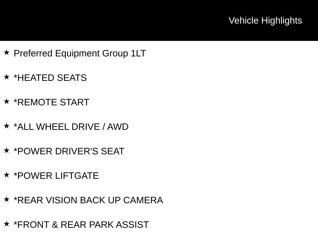 Discover the exceptional 2024 Chevrolet Equinox LT, a versatile and well-equipped SUV that seamlessly blends style, performance, and advanced technology. With its sleek Gray exterior and a wealth of premium features, this Equinox LT is poised to elevate your driving experience.Tailored to meet your needs, this Equinox LT boasts an impressive array of sought-after amenities:- Heated Seats- Remote Start- All Wheel Drive / AWD- Power Driver's Seat- Power Liftgate- Rear Vision Back Up Camera- Front & Rear Park Assist- Blind Spot Monitor- Side Blind Zone Alert- Rear Cross Traffic Alert- Lane Departure Warning- Lane Keep Assist- Forward Collision Alert- Automatic BrakingBeyond these impressive features, this Equinox LT also comes equipped with the License Plate Front Mounting Package, ensuring a seamless and cohesive look. Elevating the driving experience even further, the Preferred Equipment Group 1LT package adds an exceptional level of refinement and convenience.Powered by a 1.5L DOHC engine and paired with a 6-Speed Automatic Electronic with Overdrive transmission, this Equinox LT delivers an exceptional blend of efficiency and performance. With an EPA-estimated 24 MPG in the city and 30 MPG on the highway, you'll enjoy the perfect balance of power and fuel economy.Stepping inside, you'll be greeted by a premium Chevrolet Infotainment 3 system, complete with a high-quality 6-speaker audio setup and SiriusXM capabilities. Dual-zone automatic climate control, Bluetooth connectivity, and a rearview camera further enhance the comfort and convenience of this exceptional SUV.Safety is also a top priority, with features like dual front impact airbags, dual front side impact airbags, and an emergency communication system ensuring your peace of mind on the road.With a CARFAX 1-Owner history and the remainder of the factory warranty still in effect, this 2024 Chevrolet Equinox LT represents an exceptional value proposition. Experience the difference that this well-equipped and meticulously maintained SUV can make in your daily driving. Visit our showroom today and let us demonstrate why the Equinox LT should be your next vehicle.