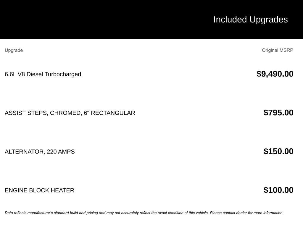 - 6.6L Duramax Turbo-Diesel V8 engine
