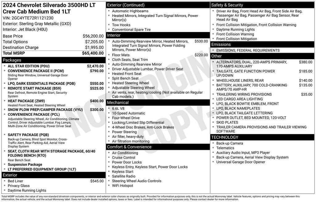 - Engine : 6.6L V-8 gasoline direct injection, variable valve control, regular unleaded, engine with 401HP