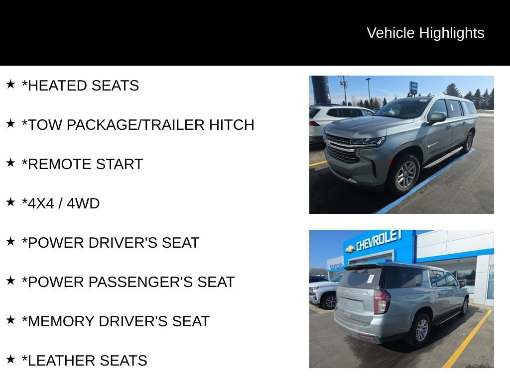 5.3L offers adequate power and the new independent rear suspension coupled with magnetic ride control provides for the smoothest riding Suburban, too date. New styling is bold and aggressive. Love the look and sound of the split dual exhaust. Interior is much improved over past generation and push/pull button shift is a nice touch that is easy to get used to. The power folding 3 and 2 row seats are a nice touch and sliding second row are a great added feature. The headrests on the 3rd row are a known problem and if you have a 2021 Suburban or Tahoe, you will likely have an issue with one or both of the headrests not staying up. Overall a refreshing and much needed update. Like the inclusion of diesel to the line up, as well.… - 5.0