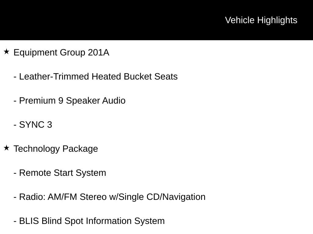 - Engine : EcoBoost 2L I-4 gasoline direct injection, DOHC, variable valve control, intercooled turbo, premium unleaded, engine with 245HP