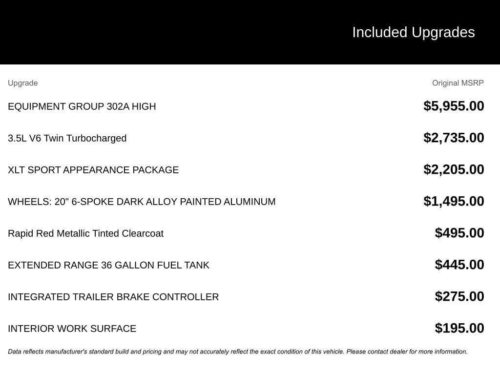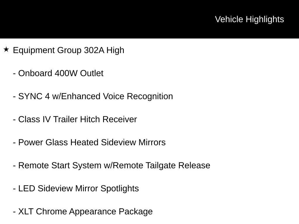 Step inside and experience the comfort and convenience of this well-equipped F-150. The spacious cabin features dual-zone automatic climate control, a leather-wrapped steering wheel, and the advanced SYNC 4 infotainment system with a 12-inch touchscreen. The integrated trailer brake controller and extended-range 36-gallon fuel tank ensure you're ready for any towing or hauling task.
