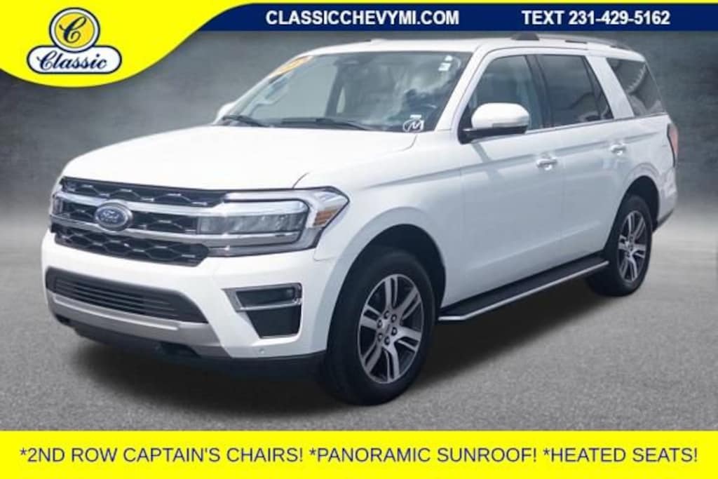 *2ND ROW CAPTAIN'S CHAIRS, *PANORAMIC SUNROOF, *HEATED SEATS, *TOW PACKAGE/TRAILER HITCH, *REMOTE START, *4X4 / 4WD, *TRAILER BRAKE CONTROLLER, *HEATED STEERING WHEEL, *POWER DRIVER'S SEAT, *POWER PASSENGER'S SEAT, *MEMORY DRIVER'S SEAT, *LEATHER SEATS, *HEATED SECOND ROW OUT BOARD SEATS, *VENTILATED / COOLED SEATS, *3RD ROW SEATS, *7 PASSENGER, *ASSIST STEPS / RUNNING BOARDS, *POWER LIFTGATE, *POWER ADJUSTABLE PEDALS, *REAR VISION BACK UP CAMERA, *REAR PARK ASSIST, *BLIND SPOT MONITOR, *SIDE BLIND ZONE ALERT, *LANE KEEP ASSIST, *NAVIGATION, *CARFAX 1-OWNER, *CARFAX CLEAN VEHICLE HISTORY, 4WD, 12 Speakers, 3.31 Axle Ratio, 3rd row seats: split-bench, 4-Wheel Disc Brakes, ABS brakes, Adjustable pedals, Air Conditioning, Alloy wheels, AM/FM radio: SiriusXM with 360L, Auto High-beam Headlights, Auto-dimming door mirrors, Auto-dimming Rear-View mirror, Automatic temperature control, Brake assist, Bumpers: body-color, Compass, Delay-off headlights, Driver door bin, Driver vanity mirror, Dual front impact airbags, Dual front side impact airbags, Electronic Stability Control, Emergency communication system: SYNC 4 911 Assist, Equipment Group 301A Mid Package, Exterior Parking Camera Rear, Four wheel independent suspension, Front anti-roll bar, Front Bucket Seats, Front Center Armrest, Front dual zone A/C, Front fog lights, Front reading lights, Fully automatic headlights, Garage door transmitter, Heated & Ventilated Leather Front Captain's Chairs, Heated door mirrors, Heated front seats, Heated rear seats, Heated steering wheel, Illuminated entry, Leather steering wheel, Low tire pressure warning, Memory seat, Navigation system: Connected Navigation, Occupant sensing airbag, Outside temperature display, Overhead airbag, Overhead console, Panic alarm, Panoramic Vista Roof, Passenger door bin, Passenger vanity mirror, Pedal memory, Power door mirrors, Power driver seat, Power Liftgate, Power moonroof, Power passenger seat, Power steering, Power windows, Radio data system, Radio: B&O Sound System by Bang & Olufsen, Rain sensing wipers, Rear air conditioning, Rear anti-roll bar, Rear reading lights, Rear window defroster, Rear window wiper, Reclining 3rd row seat, Remote keyless entry, Second Row Power Windows Removal, Security system, SiriusXM w/360L, Speed control, Speed-sensing steering, Speed-Sensitive Wipers, Split folding rear seat, Spoiler, Steering wheel memory, Steering wheel mounted audio controls, SYNC 4 w/Enhanced Voice Recognition, Tachometer, Telescoping steering wheel, Tilt steering wheel, Traction control, Trip computer, Turn signal indicator mirrors, Variably intermittent wipers, Ventilated front seats, Voltmeter, Wheels: 20 Bright Machined Aluminum, 4WD.