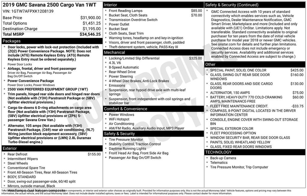 With its CARFAX 1-Owner history and clean vehicle report, you can trust that this 2019 GMC Savana 2500 Work Van has been well-maintained and cared for. Experience the uncompromising quality and capability that only a GMC can deliver. Visit our showroom today and let us demonstrate how this versatile work van can transform your business.