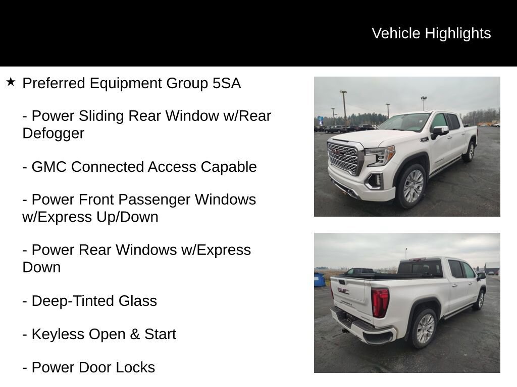 *SUNROOF, *HEATED SEATS, *TURBO DIESEL, *TOW PACKAGE/TRAILER HITCH, *REMOTE START, *4X4 / 4WD, *TRAILER BRAKE CONTROLLER, *SPRAY IN BED LINER, *HEATED STEERING WHEEL, *POWER DRIVER'S SEAT, *LEATHER SEATS, *ASSIST STEPS / RUNNING BOARDS, *TONNEAU COVER, *NAVIGATION, *BOSE PREMIUM SOUND SYSTEM, 10-Speed Automatic, 4WD, Jet Black Leather, 12-Volt Rear Auxiliary Power Outlet, 120-Volt Instrument Panel Power Outlet, 170 Amp Alternator, 2 USB Ports, 2 USB Ports (1st Row), 4G LTE Wi-Fi Hotspot Capable, Auxiliary External Transmission Oil Cooler, Chrome Recovery Hooks, Chrome Wheel To Wheel Assist Steps, Color-Keyed Carpeting Floor Covering, Compass, Deep-Tinted Glass, Denali Ultimate Package, Driver Alert Package I, Driver Alert Package II, Electric Rear-Window Defogger, Electrical Lock Control Steering Column, Floor-Mounted Center Console, GMC Connected Access Capable, GMC MultiPro Power Steps, HD Radio, HD Rear Vision Camera, Heated 2nd Row Outboard Seats, Heated Driver & Front Outboard Passenger Seating, Heavy-Duty Rear Locking Differential, High-Capacity Air Filter, Hill Descent Control, Hitch Guidance, Integrated Trailer Brake Controller, Keyless Open & Start, Lane Change Alert w/Side Blind Zone Alert, LED Cargo Area Lighting, Manual Tilt-Wheel & Telescoping Steering Column, OnStar & GMC Connected Services Capable, Power Door Locks, Power Front Passenger Windows w/Express Up/Down, Power Front Windows w/Driver Express Up/Down, Power Rear Windows w/Express Down, Power Sliding Rear Window w/Rear Defogger, Power Sunroof, Preferred Equipment Group 5SA, ProGrade Trailering System, Rear Cross Traffic Alert, Rear Dual USB Charging-Only Ports, Rear Wheelhouse Liners, Remote Vehicle Starter System, Safety Alert Seat, Signature Denali Grille, Spray-On Pickup Bed Liner w/Denali Logo, Steering Wheel Audio Controls, Technology Package, Theft Deterrent System (Unauthorized Entry), Trailering Package, Ultrasonic Front & Rear Park Assist, Universal Home Remote, Ventilated Driver & Front Passenger Seats, Wireless Charging, 10-Way Power Driver Seat Adjuster w/Lumbar, 10-Way Power Passenger Seat Adjuster w/Lumbar, 120-Volt Bed Mounted Power Outlet, 220 Amp Alternator, 3.23 Rear Axle Ratio, 4-Wheel Disc Brakes, 7 Speakers, ABS brakes, Adaptive Cruise Control - Camera, Adaptive Ride Control Suspension, Adaptive suspension, Air Conditioning, Alloy wheels, AM/FM radio: SiriusXM with 360L, Apple CarPlay/Android Auto, Auto-dimming door mirrors, Auto-dimming Rear-View mirror, Automatic Emergency Braking, Automatic temperature control, Bed View Camera, Brake assist, Bumpers: body-color, Delay-off headlights, Driver door bin, Driver Memory, Driver vanity mirror, Dual front impact airbags, Dual front side impact airbags, Electronic Stability Control, Engine Block Heater, Following Distance Indicator, Forge Perforated Leather-Appointed Seat Trim, Forward Collision Alert, Front anti-roll bar, Front Bucket Seats, Front Center Armrest, Front dual zone A/C, Front fog lights, Front Pedestrian Braking, Front reading lights, Front wheel independent suspension, Fully automatic headlights, Garage door transmitter, Genuine wood console insert, Genuine wood door panel insert, GMC MultiPro Power Steps (DISC), HD Surround Vision w/2 Trailer View Camera Provisions, Heated door mirrors, Heated front seats, Heated rear seats, Heated steering wheel, Hitch Guidance w/Hitch View, Illuminated entry, In-Vehicle Trailering App, IntelliBeam Automatic High Beam On/Off, Lane Keep Assist w/Lane Departure Warning, Low tire pressure warning, Memory seat, Multicolor 15 Diagonal Head-Up Display, Navigation System, Occupant sensing airbag, Outside temperature display, Overhead airbag, Overhead console, Panic alarm, Passenger door bin, Passenger vanity mirror, Power door mirrors, Power driver seat, Power passenger seat, Power steering, Power windows, Premium audio system: GMC Infotainment System, Premium Bose 7-Speaker S