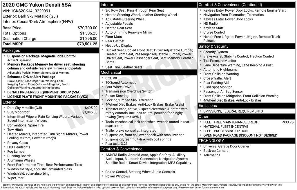 *2ND ROW CAPTAIN'S CHAIRS, *SUNROOF, *HEATED SEATS, *TOW PACKAGE/TRAILER HITCH, *REMOTE START, *ALL WHEEL DRIVE / AWD, *TRAILER BRAKE CONTROLLER, *HEATED STEERING WHEEL, *POWER DRIVER'S SEAT, *POWER PASSENGER'S SEAT, *MEMORY DRIVER'S SEAT, *LEATHER SEATS, *HEATED SECOND ROW OUT BOARD SEATS, *VENTILATED / COOLED SEATS, *3RD ROW SEATS, *7 PASSENGER, *ASSIST STEPS / RUNNING BOARDS, *POWER LIFTGATE, *POWER ADJUSTABLE PEDALS, *HEADS UP DISPLAY, *REAR VISION BACK UP CAMERA, *FRONT & REAR PARK ASSIST, *BLIND SPOT MONITOR, *SIDE BLIND ZONE ALERT, *REAR CROSS TRAFFIC ALERT, *LANE DEPARTURE WARNING, *LANE KEEP ASSIST, *FORWARD COLLISION ALERT, *INTELLIBEAM HEADLIGHTS, *FOG LIGHTS, *UNIVERSAL HOME REMOTE / GARAGE DOOR OPENER, *NAVIGATION, *BOSE PREMIUM SOUND SYSTEM, *ONSTAR, *ALLOY WHEELS, 4WD, 4-Wheel Antilock Disc Brakes, 5 Auxiliary 12-volt Power Outlets, Automatic Emergency Braking, Black Assist Steps w/Chrome Strip, Bose Active Noise Cancellation, Enhanced Driver Alert Package, Forward Collision Alert, Hands Free Power Programmable Rear Liftgate, Heated Leather-Wrapped Steering Wheel, Inside Rear-View Auto-Dimming Mirror, Integrated Trailer Brake Controller, IntelliBeam Automatic High Beam On/Off, Lane Change Alert w/Side Blind Zone Alert, Lane Keep Assist w/Lane Departure Warning, Magnetic Ride Control Suspension Package, Memory Package, Navigation System, Passive Entry System, Power Release 2nd Row Bucket Seats, Power Tilt & Telescopic Steering Column, Power-Adjustable Pedals For Accelerator & Brake, Preferred Equipment Group 5SA, Push Button Keyless Start, Rear Cross Traffic Alert, Universal Home Remote, Wireless Charging, 10 Speakers, 3.23 Rear Axle Ratio, 3rd row seats: split-bench, 4-Wheel Disc Brakes, ABS brakes, Adaptive suspension, Adjustable pedals, Air Conditioning, Alloy wheels, AM/FM radio: SiriusXM, Apple CarPlay/Android Auto, Auto High-beam Headlights, Auto-dimming door mirrors, Auto-dimming Rear-View mirror, Auto-leveling suspension, Automatic temperature control, Bodyside moldings, Bose Centerpoint Surround Sound Audio System, Brake assist, Bumpers: body-color, CD Player, CD player, Compass, Delay-off headlights, Driver door bin, Driver vanity mirror, Dual front impact airbags, Dual front side impact airbags, Electronic Stability Control, Emergency communication system: OnStar and GMC connected services capable, Exterior Parking Camera Rear, Front anti-roll bar, Front Bucket Seats, Front Center Armrest, Front dual zone A/C, Front fog lights, Front reading lights, Front wheel independent suspension, Full-Feature Reclining Bucket Seats, Fully automatic headlights, Garage door transmitter, Genuine wood console insert, Genuine wood dashboard insert, Genuine wood door panel insert, Heads-Up Display, Heated & Ventilated Driver & Front Passenger Seats, Heated door mirrors, Heated front seats, Heated rear seats, Heated steering wheel, High-Intensity Discharge Headlights, Illuminated entry, Leather Shift Knob, Leather steering wheel, License Plate Front Mounting Package, Low tire pressure warning, Memory seat, Occupant sensing airbag, Outside temperature display, Overhead airbag, Overhead console, Panic alarm, Passenger door bin, Passenger vanity mirror, Pedal memory, Perforated Leather-Appointed Seat Trim, Power door mirrors, Power driver seat, Power Liftgate, Power passenger seat, Power steering, Power Tilt-Sliding Sunroof w/Express-Open/Close, Power windows, Premium audio system: IntelliLink, Radio: AM/FM/SiriusXM w/Navigation, Rain sensing wipers, Rear air conditioning, Rear anti-roll bar, Rear reading lights, Rear window defroster, Rear window wiper, Remote Keyless Entry, Remote keyless entry, Roof rack: rails only, Security system, SiriusXM NavTraffic, SiriusXM Radio, Speed control, Speed-sensing steering, Split folding rear seat, Spoiler, Steering wheel memory, Steering wheel mounted audio contro