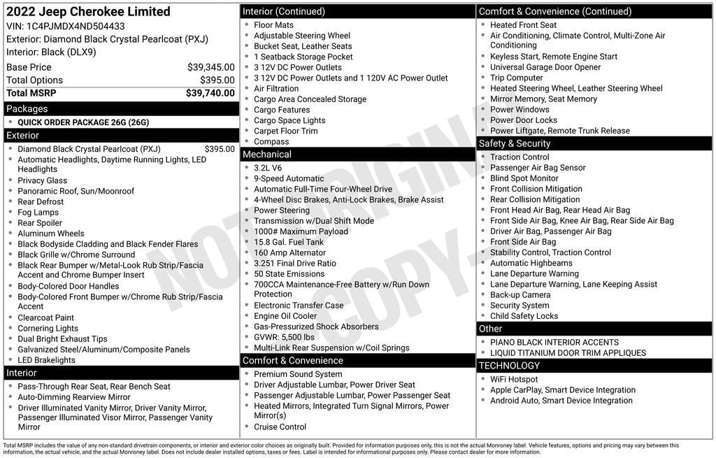 Used 2022 JeepCherokee Limited 4x4