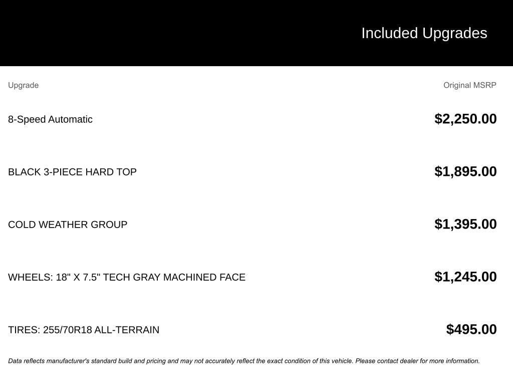 *HEATED SEATS, *REMOTE START, *4X4 / 4WD, *OFF ROAD PACKAGE, *HEATED STEERING WHEEL, *REAR VISION BACK UP CAMERA, *FORWARD COLLISION ALERT, *UNIVERSAL HOME REMOTE / GARAGE DOOR OPENER, *18 INCH WHEELS, *CARFAX 1-OWNER, *CARFAX CLEAN VEHICLE HISTORY, 3.45 Overall Top Gear Ratio, 4-Wheel Disc Brakes, 9 Speakers, ABS brakes, Air Conditioning, Alloy wheels, AM/FM radio: SiriusXM, Apple CarPlay/Android Auto, Auto-dimming Rear-View mirror, Automatic temperature control, Aux Battery, Black 3-Piece Hard Top, Brake assist, Cloth Low-Back Bucket Seats, Cold Weather Group, Compass, Delay-off headlights, Driver door bin, Driver vanity mirror, Dual front impact airbags, Dual front side impact airbags, Electronic Stability Control, Emergency communication system: SiriusXM Guardian, Freedom Panel Storage Bag, Front anti-roll bar, Front Bucket Seats, Front Center Armrest w/Storage, Front dual zone A/C, Front fog lights, Front License Plate Bracket, Front reading lights, Fully automatic headlights, Garage door transmitter, Heated door mirrors, Heated Front Seats, Heated Steering Wheel, Heavy Duty Suspension w/Gas Shocks, Illuminated entry, Integrated roll-over protection, Low tire pressure warning, Navigation System, No Soft Top, Non-Lock Fuel Cap w/o Discriminator, Occupant sensing airbag, Outside temperature display, Panic alarm, ParkView Rear Back-Up Camera, Passenger door bin, Passenger vanity mirror, Power door mirrors, Power steering, Power windows, Quick Order Package 25G Sahara, Radio data system, Radio: Uconnect 4C Nav w/8.4 Display, Rear anti-roll bar, Rear reading lights, Rear Window Defroster, Rear Window Wiper/Washer, Remote keyless entry, Remote Start System, Security system, Speed control, Split folding rear seat, Steering wheel mounted audio controls, Stop-Start Dual Battery System, Tachometer, Telescoping steering wheel, Tilt steering wheel, Traction control, Trip computer, Variably intermittent wipers, Voltmeter, Wheels: 18 x 7.5 Machined w/Gray Spokes, Wheels: 18 x 7.5 Tech Gray Machined Face.