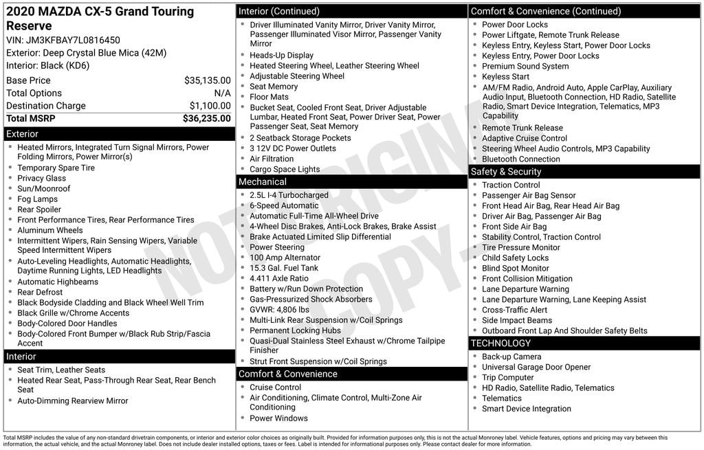 Used 2020 MazdaCX-5 Grand Touring Reserve