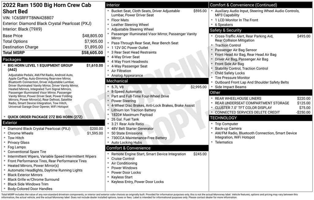 Don't miss the opportunity to make this 2022 Ram 1500 Big Horn/Lone Star your own. Schedule a test drive today and experience the power and versatility that this truck has to offer. We're confident you'll be impressed by its performance, features, and value. Let us show you why the Ram 1500 is the perfect choice for your next vehicle.