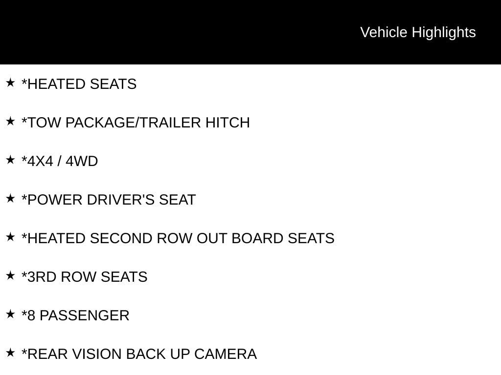 - Overhead airbags : Curtain first, second and third-row overhead airbags